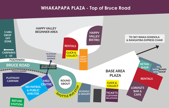 - 瓦卡帕帕廣場地圖 Whakapapa plaza – 初到雪場的廣場