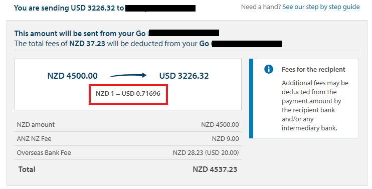 雖然以%計算手續費聽起來很虧,但匯款金額量各大的話,wise還是屌打ANZ的,因為匯率的影響會更大換到的美金也差更多的。