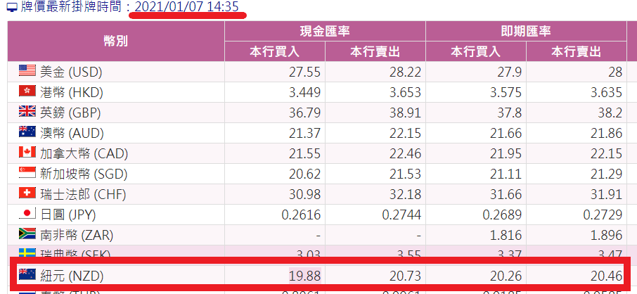 此篇文章的匯率 (紐幣兌換台幣) 都是以 2021/1/7 的價格呈現