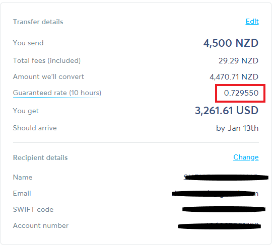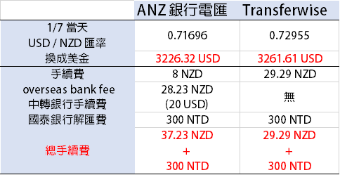 匯款 4500NZD,在 wise 就比銀行換匯多了35 USD 左右。
